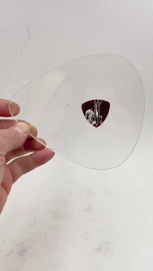 at my link - I made an acrylic pick-shaped frame for this guitar pick, currently up for auction. Check it